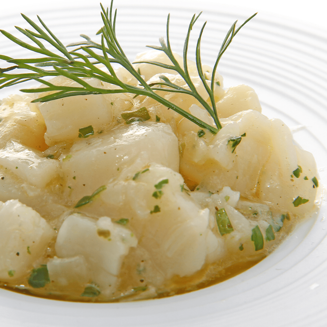 Apprenez à réaliser un un dos de cabillaud rôti, ravioles de champignons et un crémeux chocolat blanc et pomelos