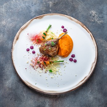 Programme : Apprenez à réaliser un agneau en croûte, pommes de terres fondantes, carottes rôties au miel, sauce ail des ours + croustillant de riz soufflé, poire pochée, crème anglaise chicorée - Boissons incl.