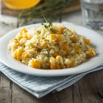 Programme : Apprenez à réaliser un risotto patate douce et noisette, chips de jambon cru